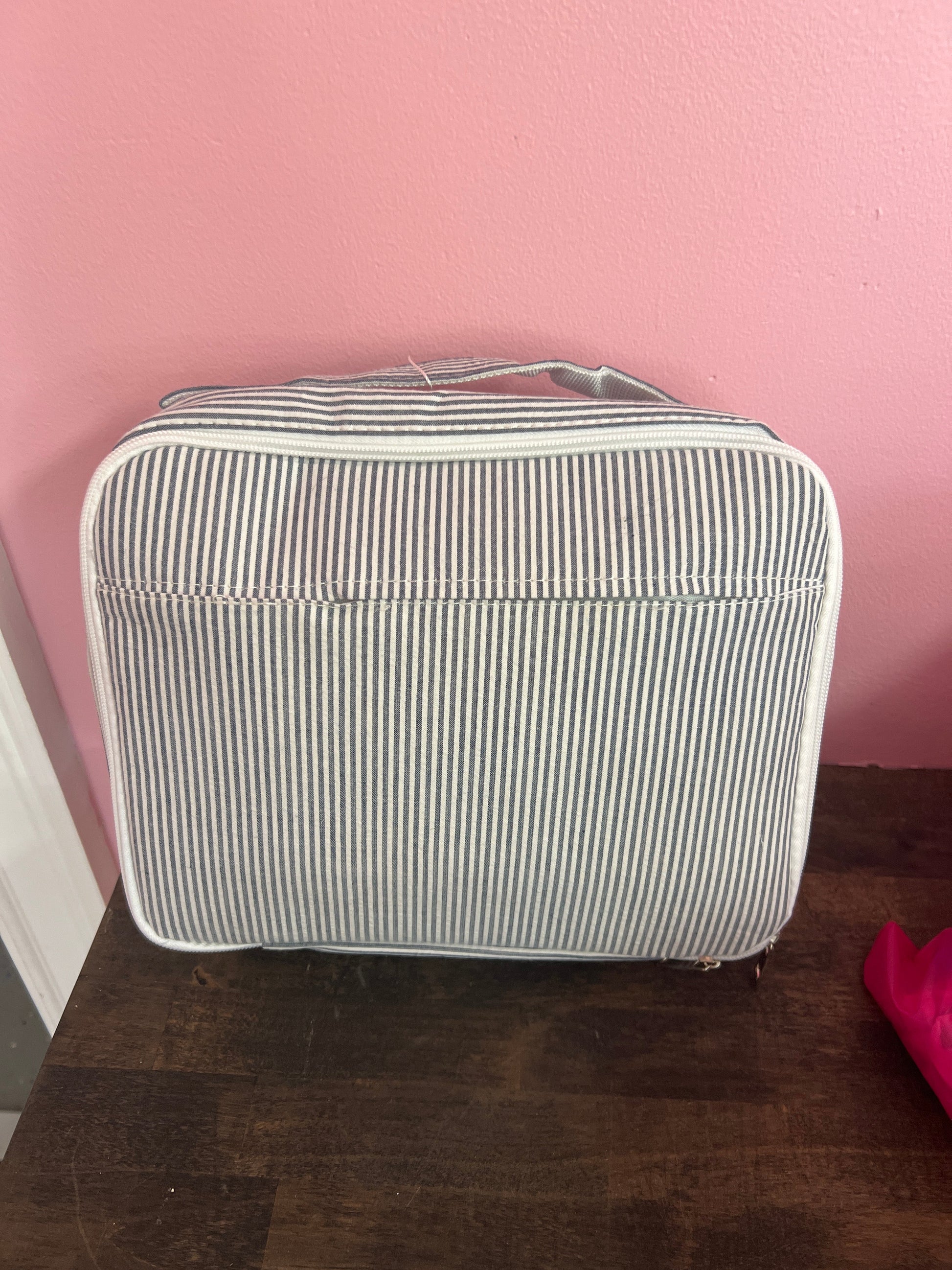 blue seersucker lunch bag