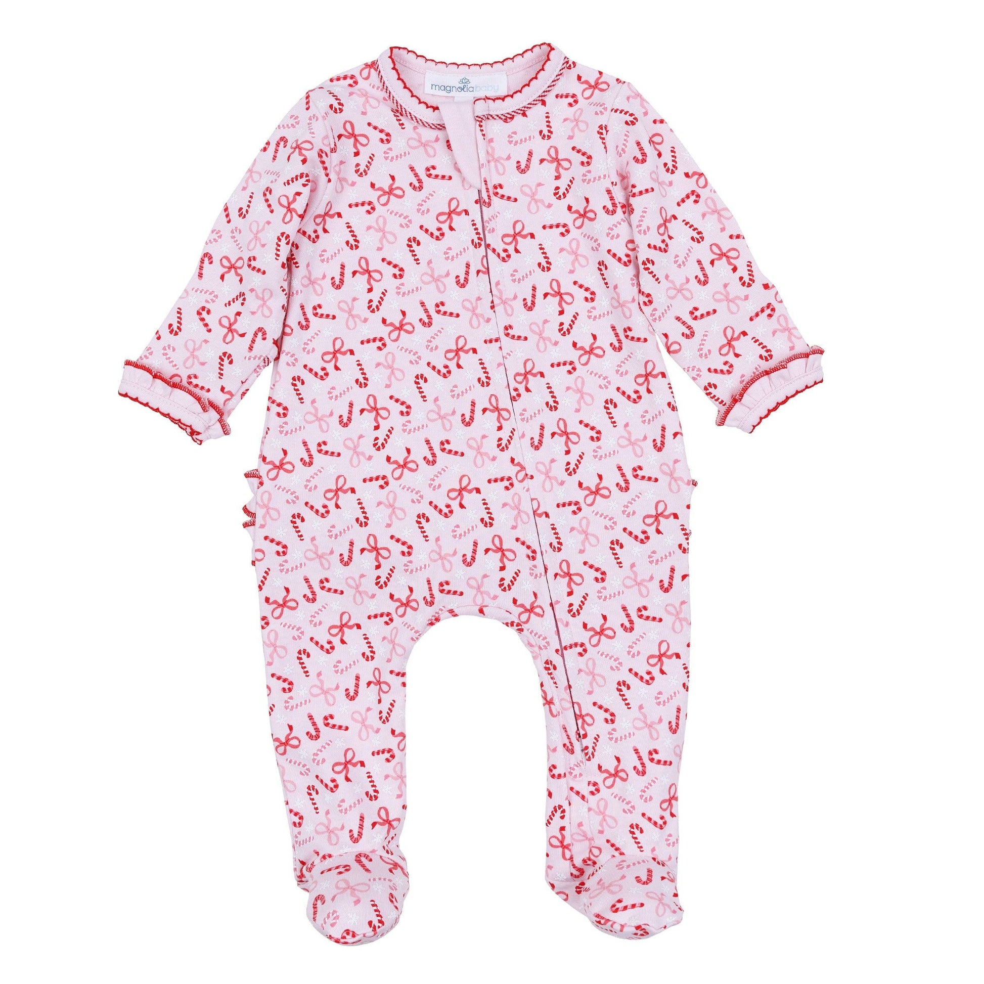 Magnolia Baby - Candy Cane Lane Print Ruffle Zip Footie