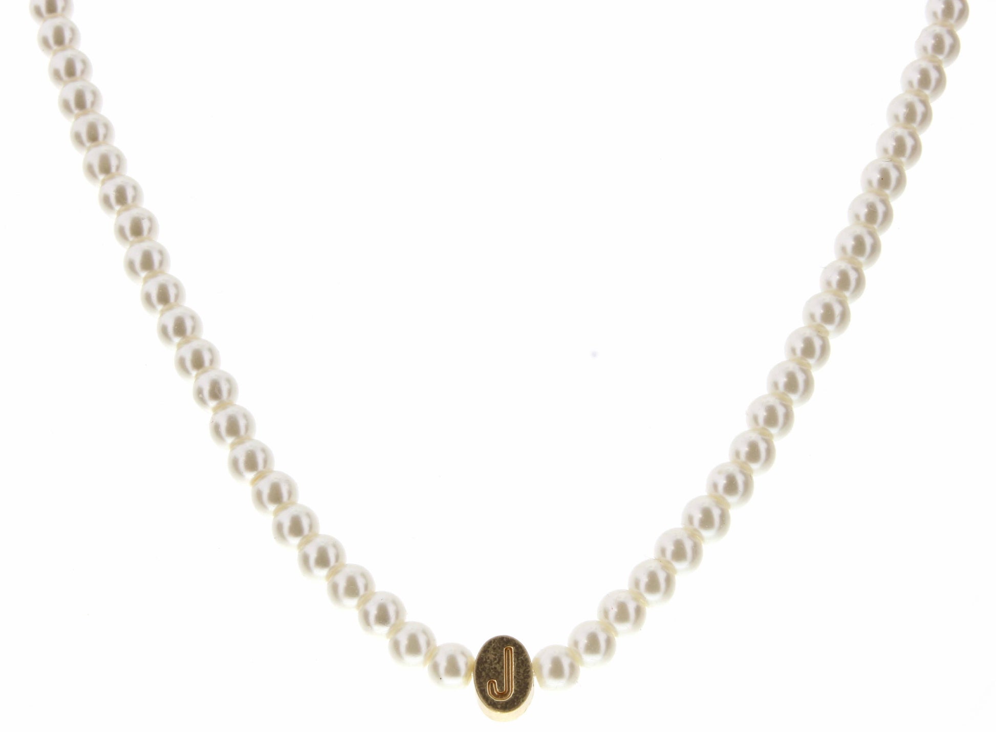 Kids 14" Gold "J" Initial on Pearl Strand Necklace, 3" Ext.