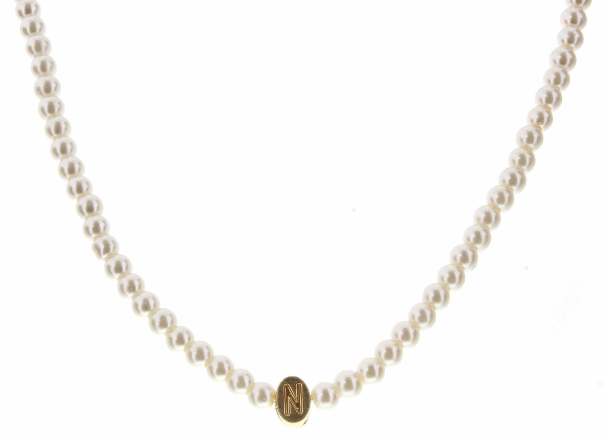 Kids 14" Gold "N" Initial on Pearl Strand Necklace, 3" Ext.