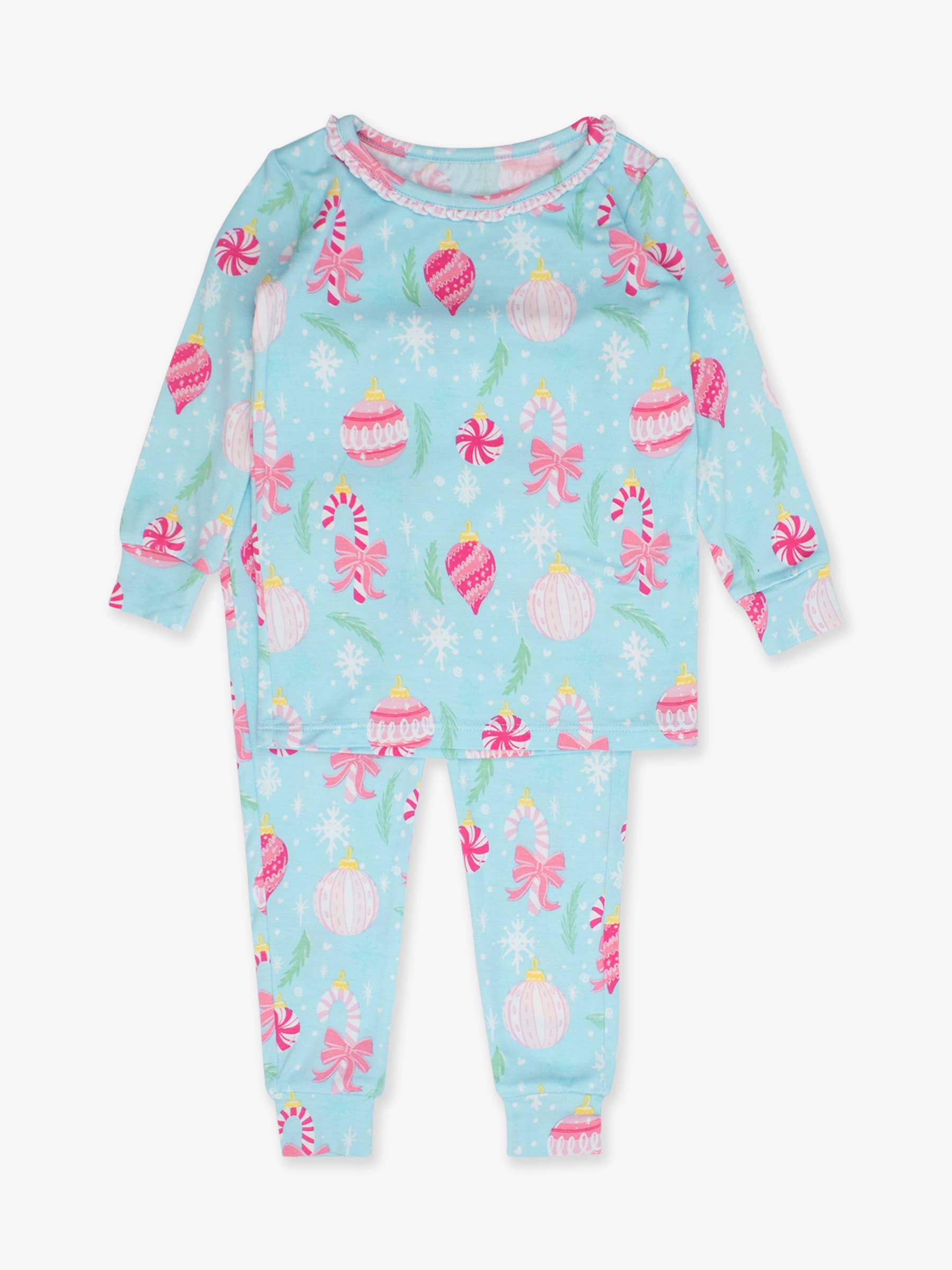 SoftSnooze™ Toddler Girls Bamboo Viscose Ornament Dreams Ruffle Long Sleeve Pajama Set with Signature Rear Ruffles