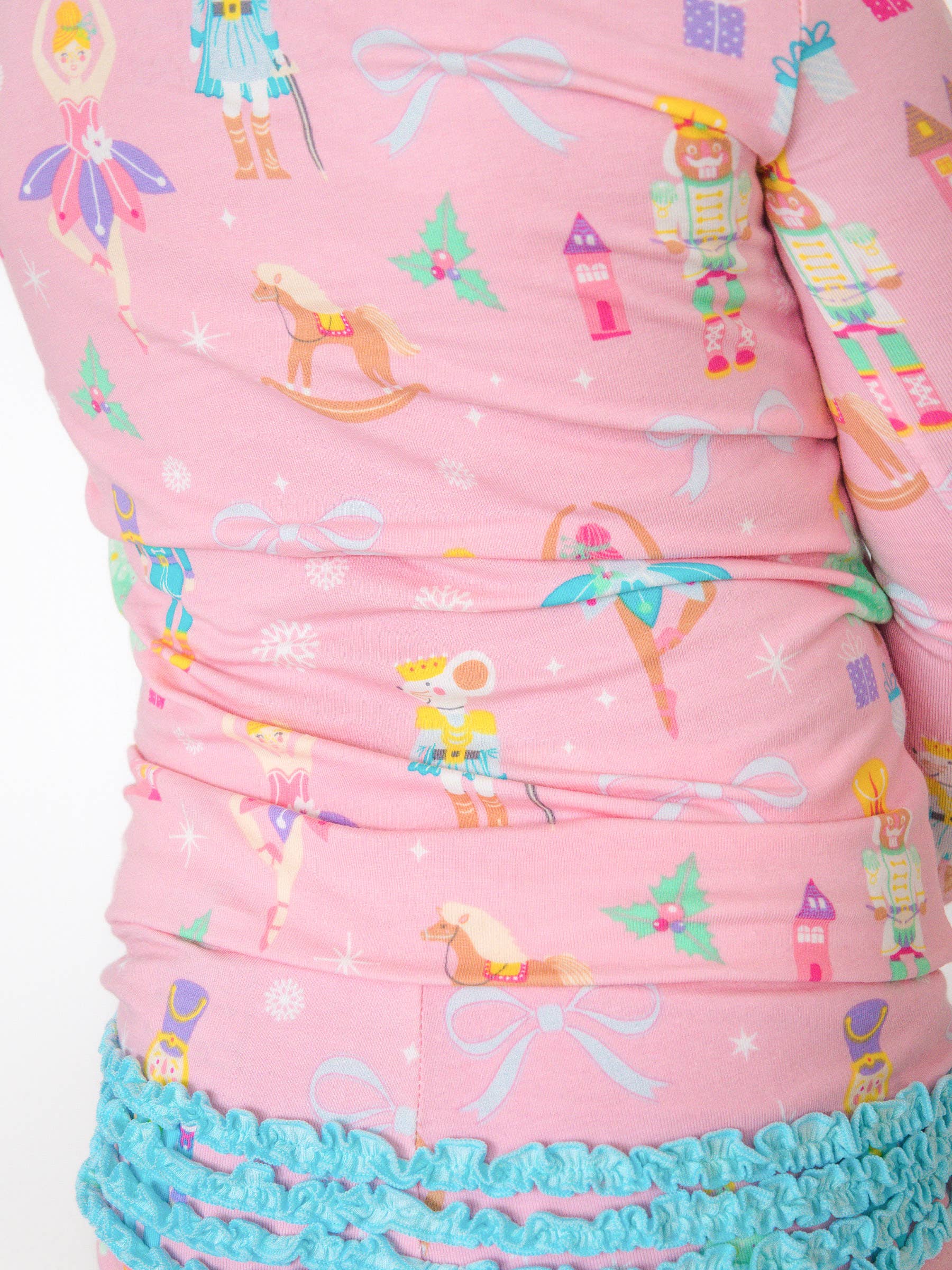 SoftSnooze™ Toddler Girls Cotton Modal Sugarplum Dreams Ruffle Long Sleeve Pajama Set with Signature Rear Ruffles