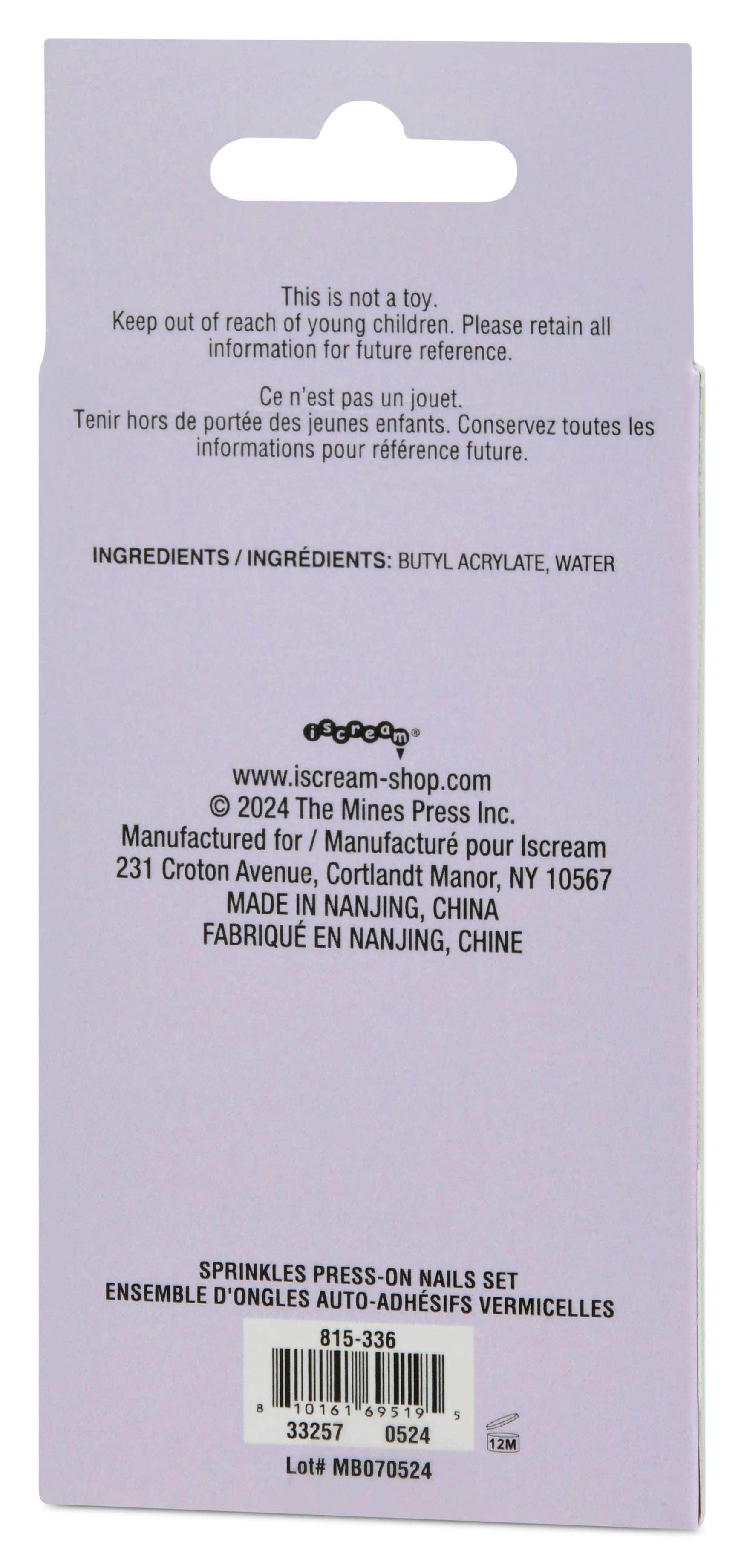 Iscream's Sprinkle Press-n Nail Set includes 24 press-on nails. Peggable packaging.