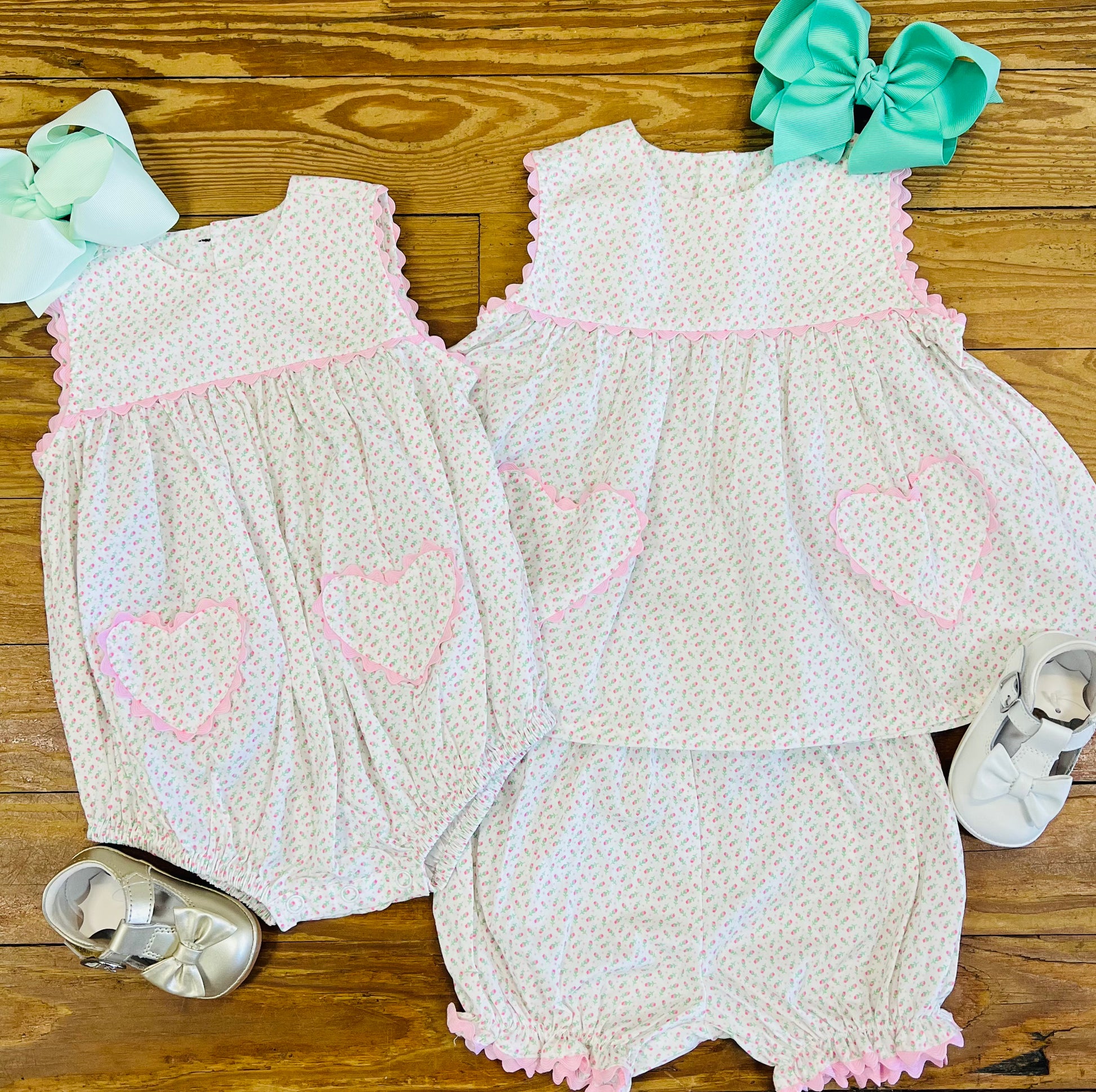 The Sweet on Summer Bloomer Set features charming details ideal for everyday wear during spring and summer. This versatile set is also suitable for themed occasions, such as Valentine’s Day, enhancing its functionality in a child's wardrobe. The design emphasizes comfort and ease of movement, contributing to an enjoyable wearing experience.